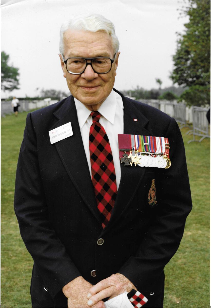 By the end of the operation, “C” Company was reduced to a quarter of its original size with just twenty-six men not wounded or killed. Regardless of the perilous conditions in which he found himself, Tilston was described by one of his platoon leaders as “absolutely cool” and having “no regard” for enemy fire. Tilston’s injuries at the Hochwald were severe enough that he lost both of his legs. This injury, combined with his previous wounds, caused him to be sent back to Canada. Before leaving Europe, he was awarded the Victoria Cross for valour in the presence of the enemy, the highest and most prestigious award in the British/Canadian award system. The ceremony took place on 22 June 1945 at Buckingham Palace. Receiving the Victoria Cross was largely accredited to the accounts of his men, who spoke highly of him. Despite the honour being thrust upon him, Tilston remained humble about his actions. He stated later that the most important trait in earning a Victoria Cross was “inexperience.”